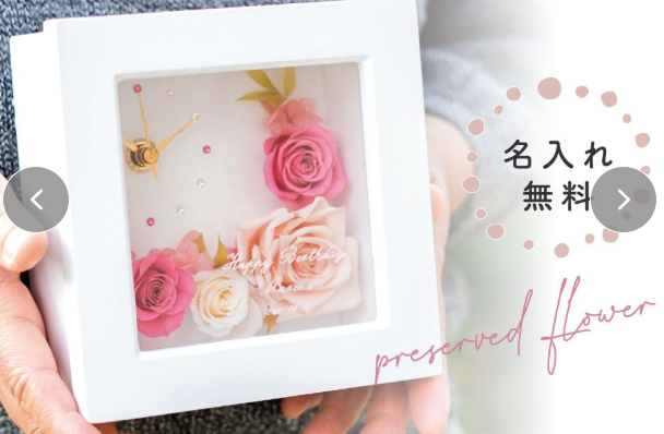 下記のような時計付きのプリザーブドフラワーも、クリニックの周年祝いに喜ばれるでしょう。