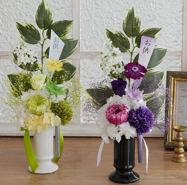近年は、生花にこだわらず、造花やプリザーブドフラワーの仏花を選ぶ人が増えています。
