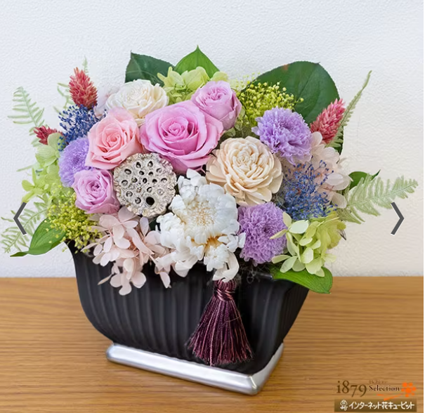 また、プリザーブドフラワーは造花と違い「本物の花」を使っているため、見た目が生花に近く、先祖様への礼儀を重んじる場面でも違和感なく使用できます。